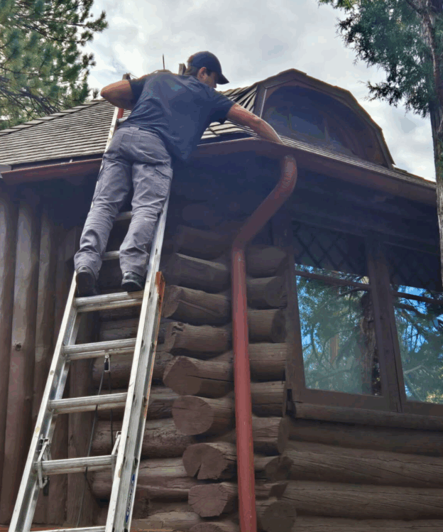 Don’t want to climb ladders or wrestle with wet pine needles? Call us before your gutters freeze, we’ll take care of it for you.